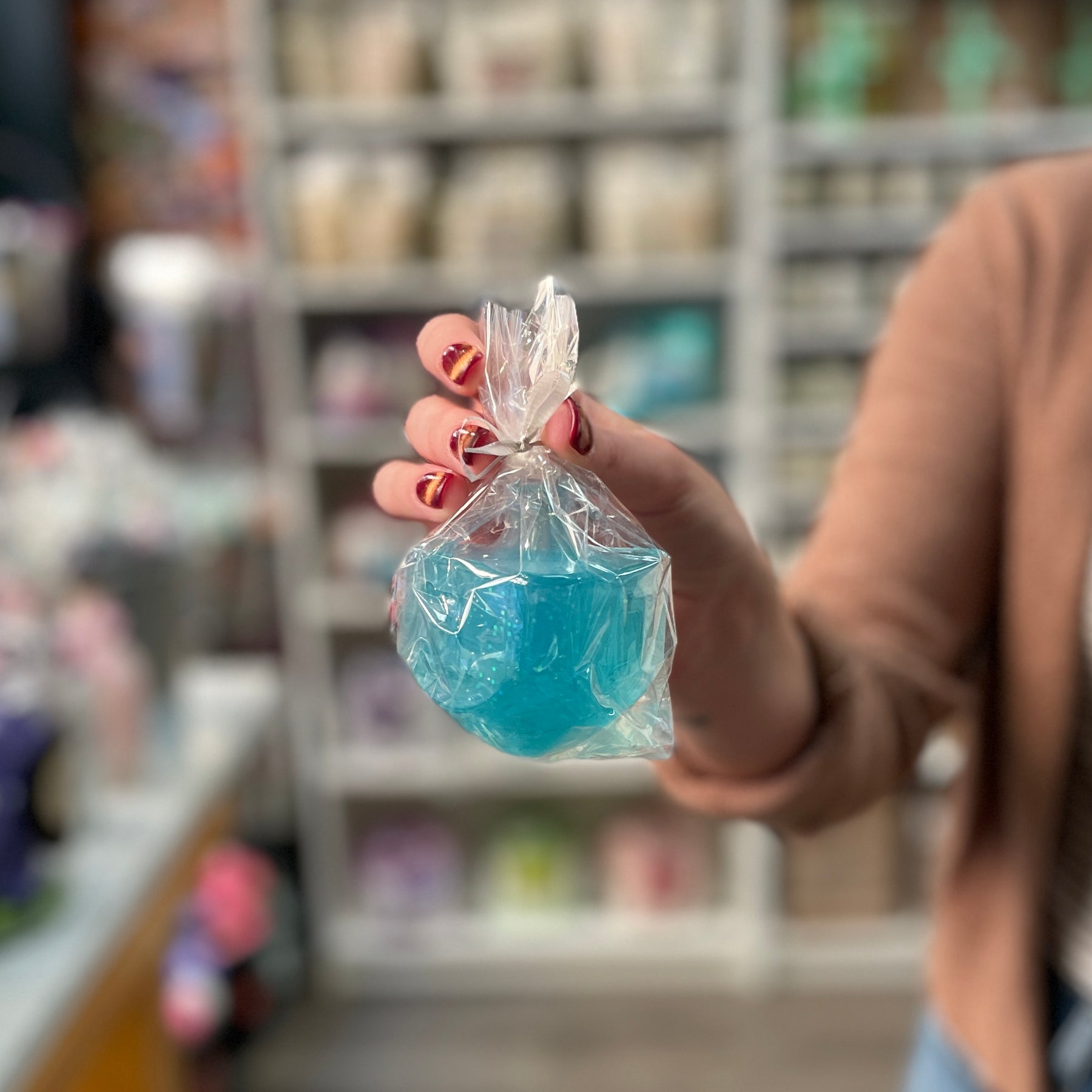 our sparkling dreidel soap is scented with sweet starlight mint peppermint oil. each 4 ounces bar comes wrapped individually in a cello bag with ribbon.