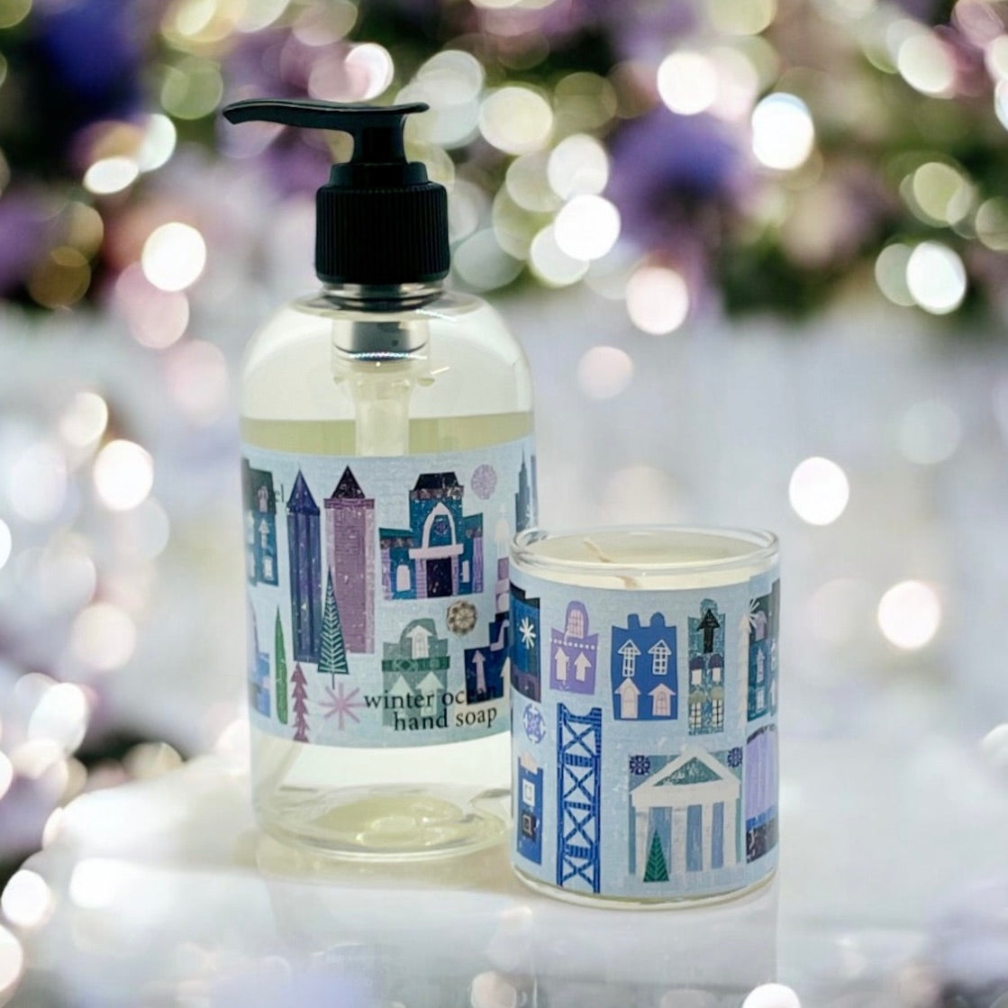 each candle gift duo contains a gentle 8oz hand soap and 2.5oz soy wax candle. great for the kitchen or bathroom. bagged and ribboned for gifting. gift box available upon request